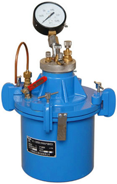 CA-3型直讀式混凝土含氣量測定儀測定原理是根據氣態方程,保持一定壓力的氣室和裝滿試料的容器之間,開閉壓力平衡時,兩個容器的壓力達到平衡時,氣室壓力減少的量即是砂漿中的空氣含量所占的百分比,在壓力表上表示出的即是試料中的空氣含量。